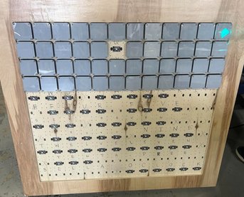 This week was primarily working on the giant word clock again. Jaspreet, Bella, and I finished the final layer of wood finisher and allowed it to dry. After it dried it looked very clean and polished. We brought it back to our working area with all of the letter blocks. The three of us started to distribute the work amongst us when it came to inserting the letter blocks onto the board. I mainly helped at the back of the board with the nuts. It was very efficient as there was 121 blocks and only three of us. I prepared and passed Bella and Jaspreet the blocks.